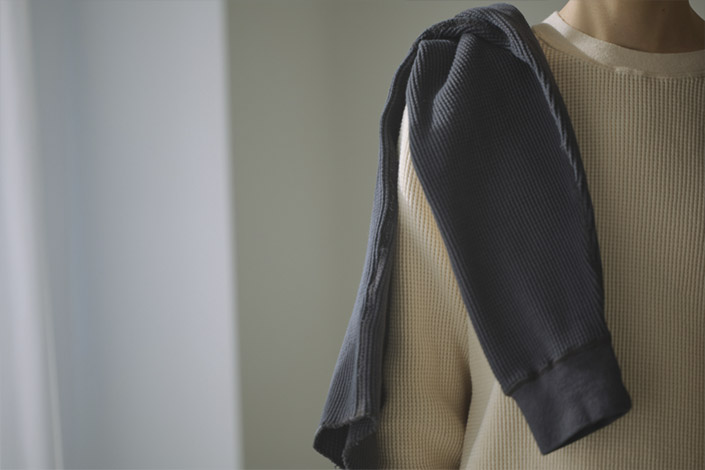 ごみの出ない循環型モノづくりの一環として、つくられた糸・生地を使用した製品になります。